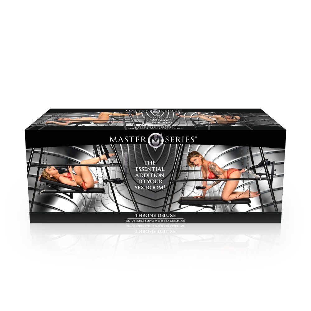 Créez un univers à la hauteur de vos fantasmes les plus fous avec le Throne Deluxe. Ce hamac ajustable innovant intègre un sextoy amovible conçu pour un plaisir maximal, en couple ou en solo. Sa structure robuste en acier inoxydable supporte jusqu'à 150 kg et accueille une planche rembourrée confortable, suspendue par des chaînes. Inclinable de 90° à 180°, elle se transforme en lit flottant.