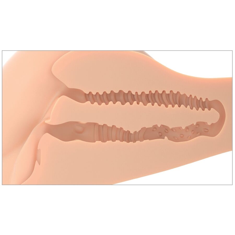 - Canal interno: Único, com aproximadamente 10 polegadas de comprimento, texturizado (padrões diferentes em cada entrada), apertado e elástico